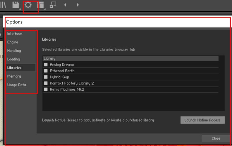 - 반드시 필요한 경우가 아니면 KONTAKT 메모리 서버를 활성화하지 마십시오.