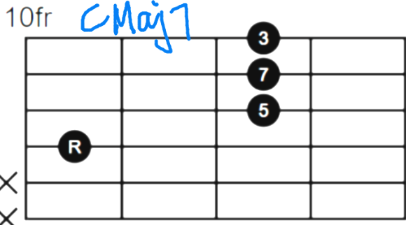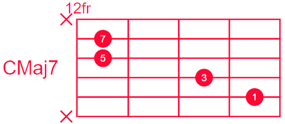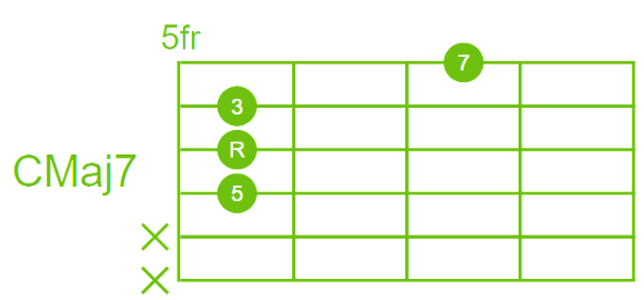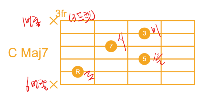 메이저 7 코드는 1도, 장 3도, 완전 5도, 장 7도 화음이다.