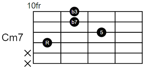 도미넌트 7 코드에서 장 3도 음(미)을 반음 내려 단 3도로 만들어주면 너무나 간단하게 Cm7 코드가 된다.