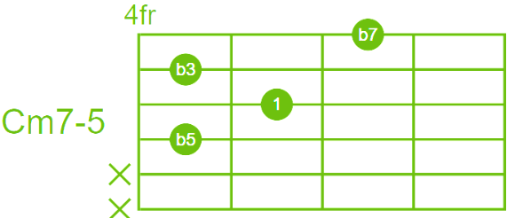 마이너 7 코드에서 5도음(솔)을 반음 내려 주면 마이너 7 플랫 5 화음이 된다.