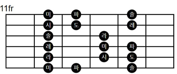 5번 줄 근음 코드들은 모두 이 스케일에서 나온다.