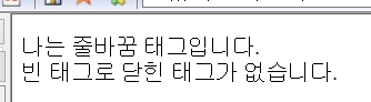 <p>나는 줄바꿈 태그입니다. <br> 빈 태그로 닫힌 태그가 없습니다.</p>