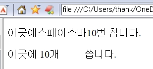 그리고, 스페이스 바(space bar)로 빈칸을 삽입 대신,  를 쓰면 된다.