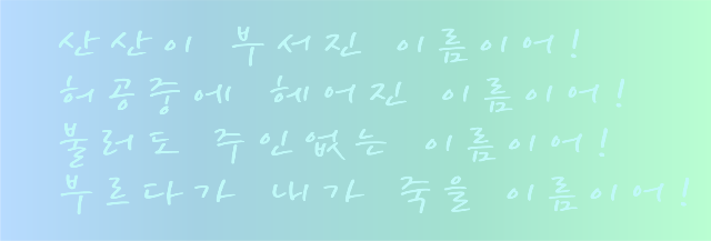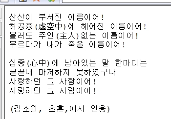 (김소월, 초혼,에서 인용)</pre>