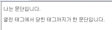 <p>열린 태그에서 닫힌 태그까지가 한 문단입니다.</p>