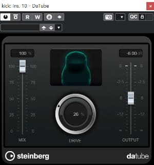 Quadrafuzz 플러그인; 킥 사운드에 펀치감을 주는 데 있어 Quadrafuzz 플러그인(큐베이스 기본 장착 플러그인)을 인서트에 걸어 아날로그 질감을 줄 수 있다