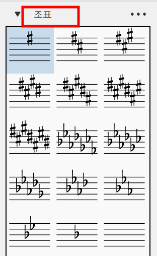 팔레트에서 '조표'를 선택한 후 드래그하여 '전조'되는 마디에 갇다 놓으면 된다.