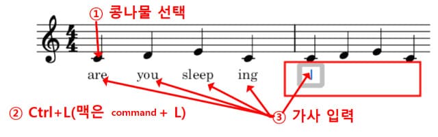 (1) 먼저 가사를 입력할 음표를 선택한다.