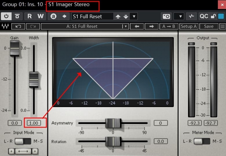 3) S1 Imager Stereo)에서 리드 보컬의 스테레오 폭(Width)을 설정 방법