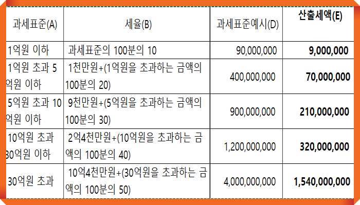| 상속세 세율 | 과세표준 × 세율 = 산출세액 |