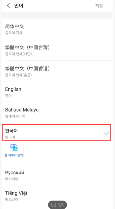 '한국어'를 선택합니다.