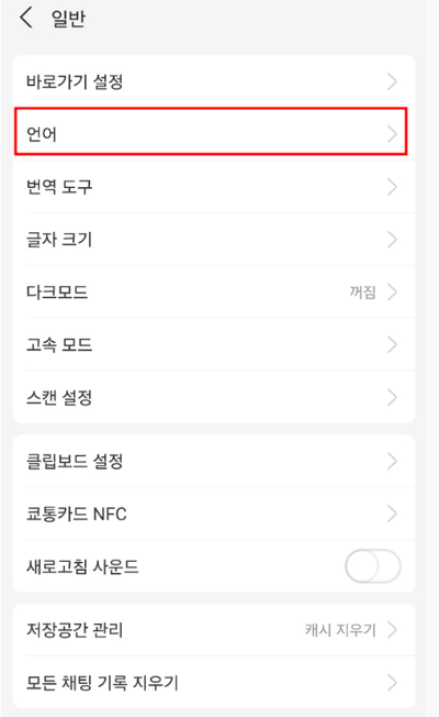 한국어로 언어 설정하기 위해서는 맨 하단의 우측에 '마이' 또는 '나의' 또는 '我的' 또는 'My' 등을 선택한 후, 우측 상단의 '톱니바퀴' 모양을 누릅니다.