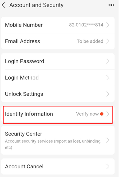 Identity Information을 누릅니다