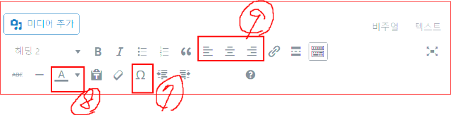 (이 편집기 워드프레스 고전 편집기임, 아래 2의 그림과 모드만 다름. 만일 없으면 플러그인에서 다운로드 가능함)