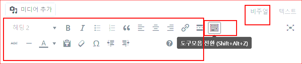 이 편집기의 도구 모음은 티스토리 편집기의 도구 모음과 거의 비슷하다.