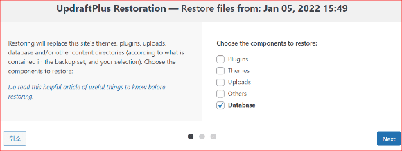 | 워드프레스에서 백업 콘텐츠 찾아보기: Browse backup contents in WordPress | ○ | |