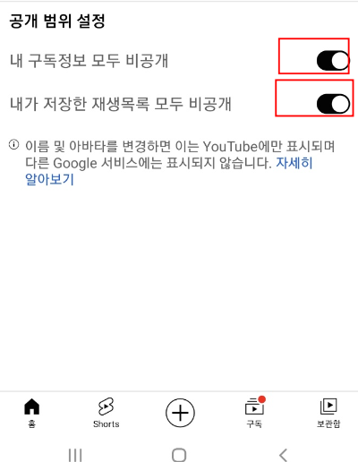- 스마트폰에서 구독자 정보와 내가 저장한 재생 목록 등을 공개 혹은 비공개 설정하는 방법