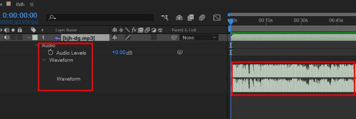 오디오의 아래 화살표를 클릭하여 Waveform을 연다.