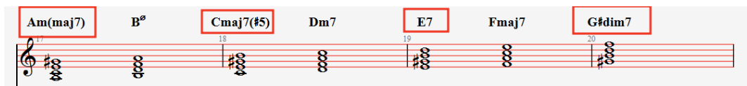 즉, Am 또는 E7이라는 해소 지점을 유지하면서도, 중간중간 비정형 코드들을 잘 활용하는 것이 필요합니다.