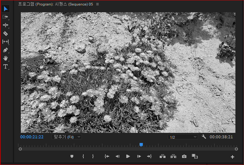 효과 창에서 흑백 효과를 검색 후, 시퀀스에 드래그해 보면