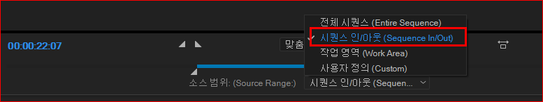 =전체 시퀀스 중 인 아웃 구간만 내보내기 한다.