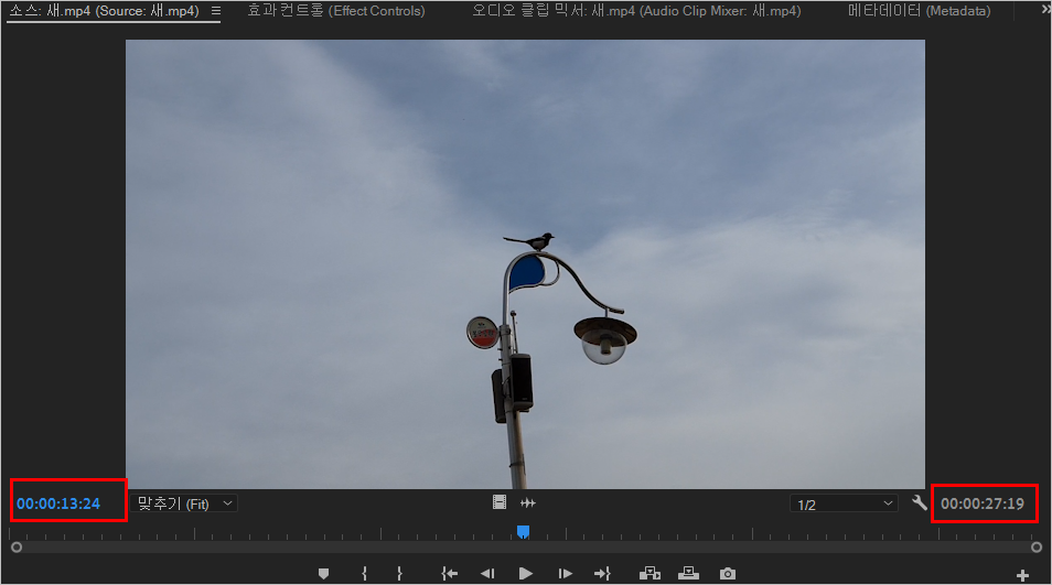 (2) 타임라인의 영상 소스 더블클릭 - 소스 모니터에 보인다