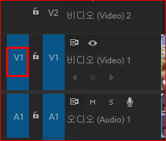 소스 패치 아이콘 활성화해야 - 프로그램 모니터에 영상 삽입 가능함