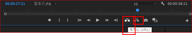 추출= 해당 구간 제거된 후, 뒷 클립이 붙는다(빈 공간의 앞뒤가 붙는다.)
