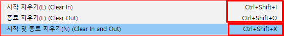 단축키 마크인 I, 마크 아웃 O : 내보내기 할 때 많이 쓰인다