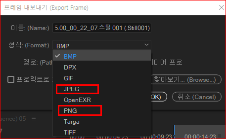 프레임 내보내기 ctrl+shift+E = 썸네일 추출하는 기능.