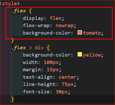 flex 컨테이너를 만들기 위해서는 컨테이너에 디스플레이 속성에 속성값 flex를 적용한다.