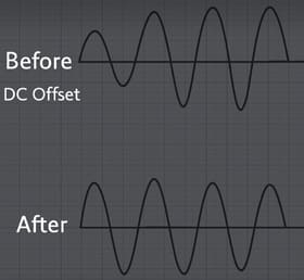 - 즉, DC Offset은 오디오 신호가 원점(0)을 기준으로 위아래로 대칭이 되어야 하는데, 전체적으로 어느 한쪽(위나 아래)으로 치우쳐 있는 현상을 말합니다.