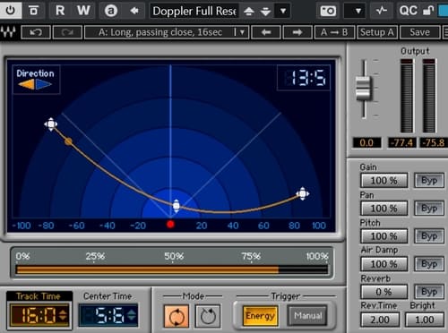 Doppler Mono/Stereo는 기타 트랙 중에서 좌우로 이동하는 효과가 필요한 트랙에 사용해야 합니다. 아르페지오 기타 트랙과 리듬 기타 트랙의 역할과 믹스에서 차지하는 공간적 위치에 따라 다르게 적용해야 합니다.