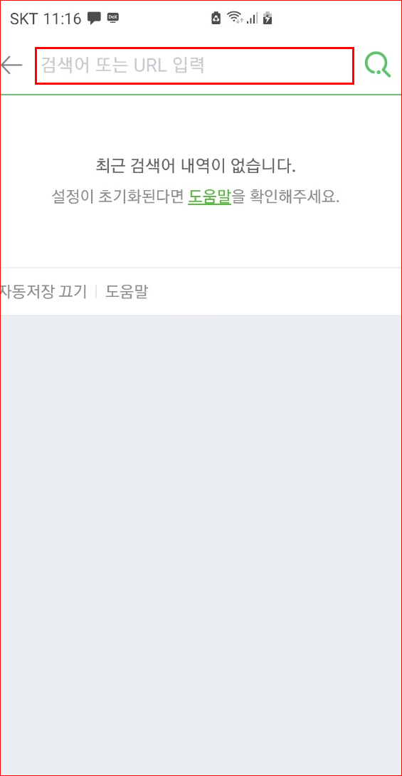다음 화면의 사각형 안을 한 번 더 터치해야 한다.(그러면 그다음 화면이 나온다, 검색어가 적은 경우 이 과정 없이 그다음 화면이 바로 나온다)
