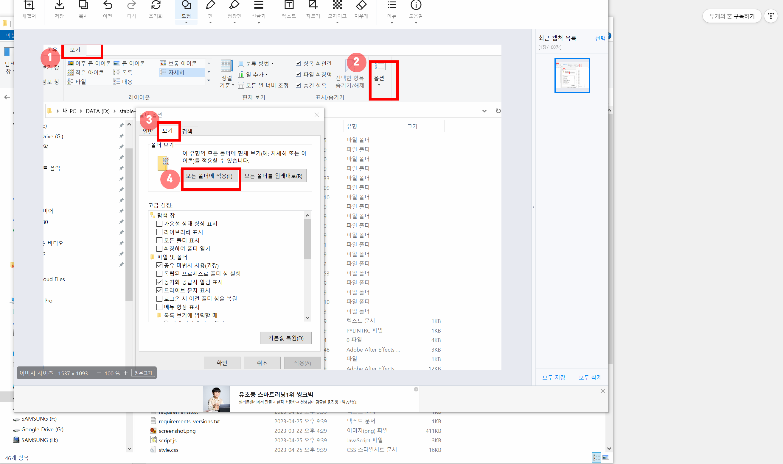 Win10 폴더 보기 옵션을 하위 폴더 모든 폴더에 적용하는 방법