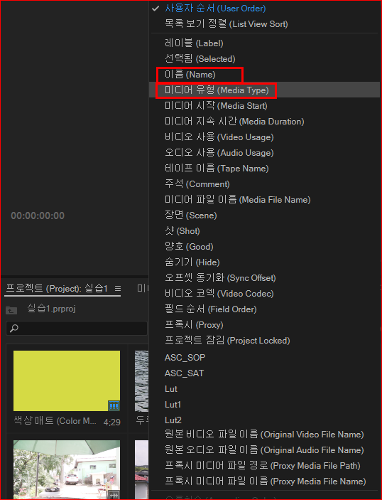 메타데이터 탭을 클릭하여 목적에 맞게 클립을 정렬할 수 있다.