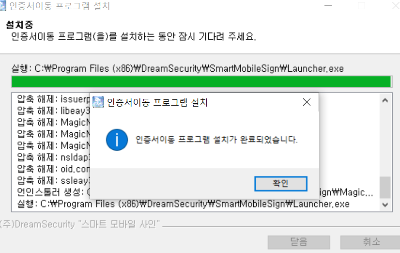 ④ 처음 이용 시 '프로그램 설치' 팝업 창이 뜬다. 10초에서 1분 정도 소요되어 설치가 완료된 후 다음 페이지로 이동하는데, 자동 설치가 잘 안되면 '프로그램 수동 설치'를 누른 후 다운로드된 실행파일을 직접 설치한다.