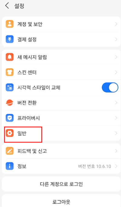 다음 화면에서 '일반' 또는 '通用' 또는 같은 위치에 있는 영문을 누릅니다.